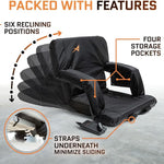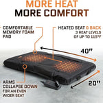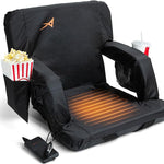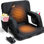 - FEEL AT HOME, ANYWHERE - Our heated seat is 20” wide, has a waterproof bottom and water-resistant construction to keep you nice and dry when the bleachers are wet. It comes with high-density memory foam cushions that feel like sitting on your couch. What’s more, our seat offers 6 adjustable reclining positions, back support and soft padded armrests.