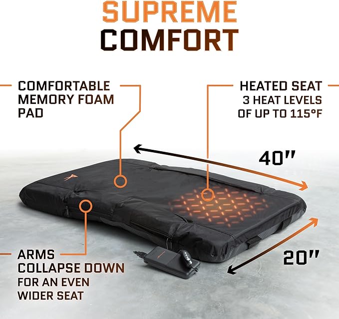 - MORE HEAT, MORE COMFORT - Take your comfort while watching your favorite sports games at the stadium to a next level, with our Double Heated Stadium Bleacher Seat. With a Double Heat Mode, you can warm up the seat and the back at the same time with degrees up to 115F that will keep you warm during cold months, the BATTERY you need to turn heating mode INCLUDED, a slew of pockets for your favorite snacks and unrivaled, padded comfort- the game has changed!
