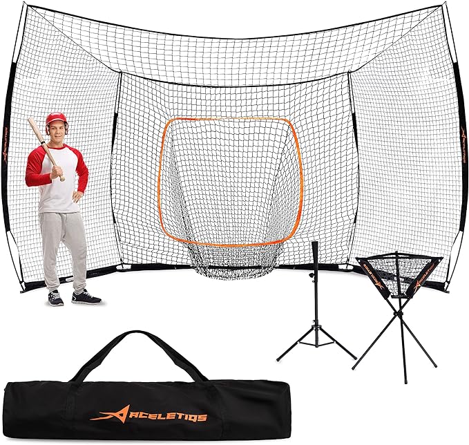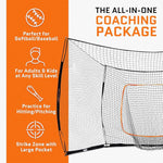 - BUNDLE INCLUDES - 17x10 Portable Baseball Backstop, Baseball Caddy that can hold 60 Baseballs or 30 Softballs, Collapsible Batting Tee with Flexible Top and Carrying Bag for ultimate portability