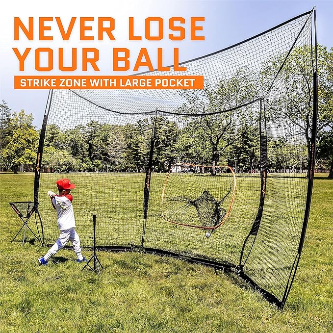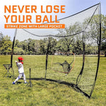 - LARGE POCKET NET - Built in to catch and hold balls during training session. With our super strong 7-ply knotless baseball & softball net, you can spend less time chasing balls and more time improving your skills! The increased frame thickness adds rigidity and weight for greater stability when batting and pitching into the net.