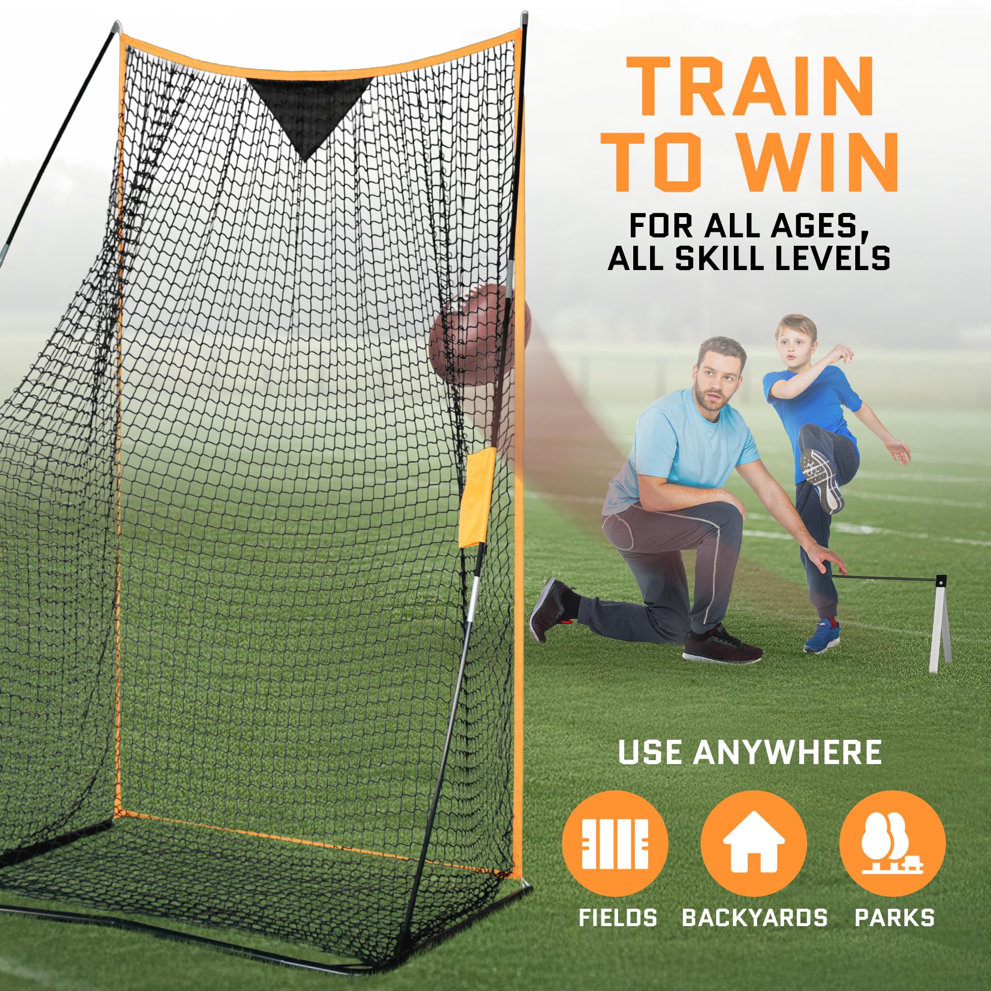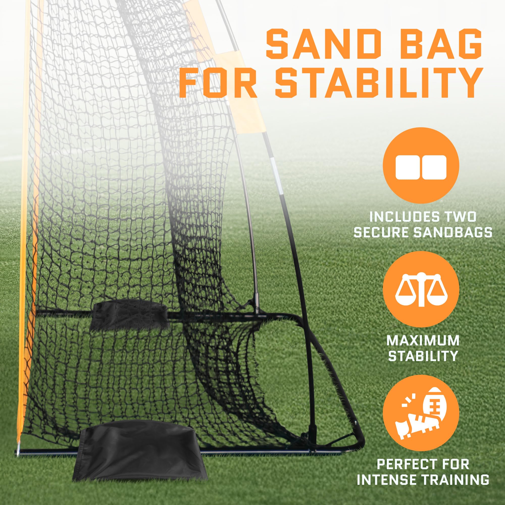 - DURABLE & STABLE: This football net for throwing features a 5-ply knotless polyester & 420D binding, galvanized steel frame, 12.7mm fiberglass poles, lightweight yet sturdy football kicking net built for long-lasting, all-weather training sessions.