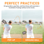 - ALL POSITION TRAINING: Hit fly balls, grounders, and line drives using this fungo racket baseball paddle. Boost player footwork and reaction speed. Perfect for infield, outfield, or team fungo bat softball drills with coaches, parents, or solo reps.