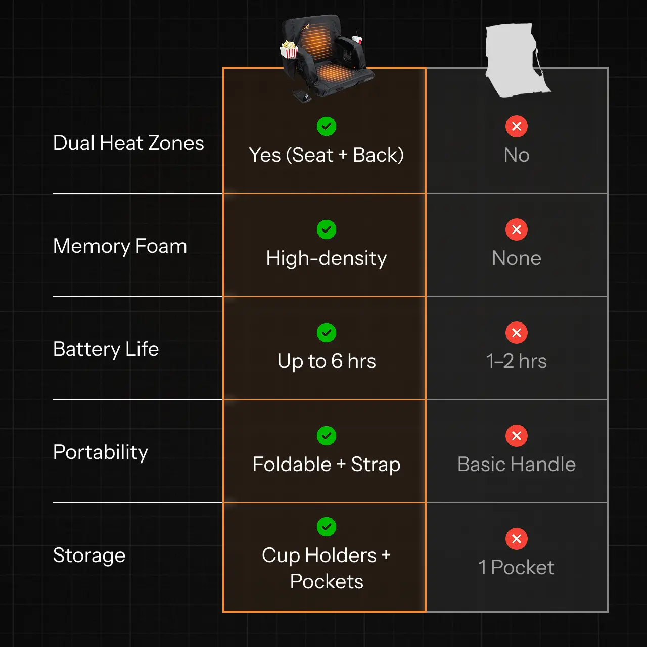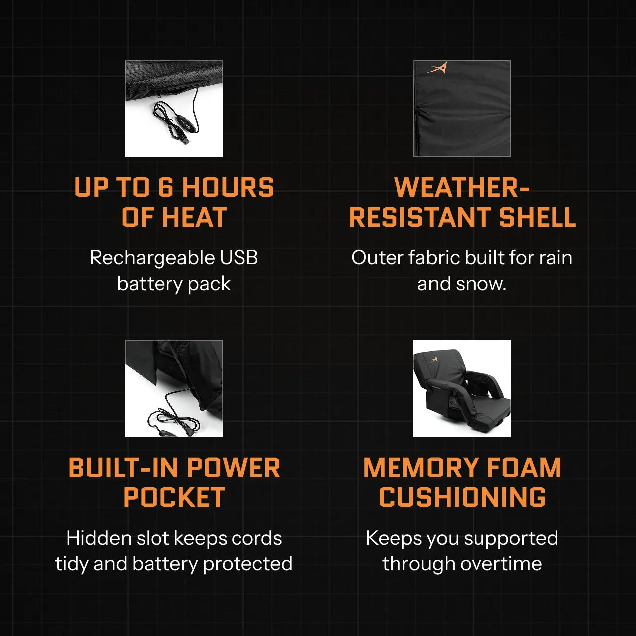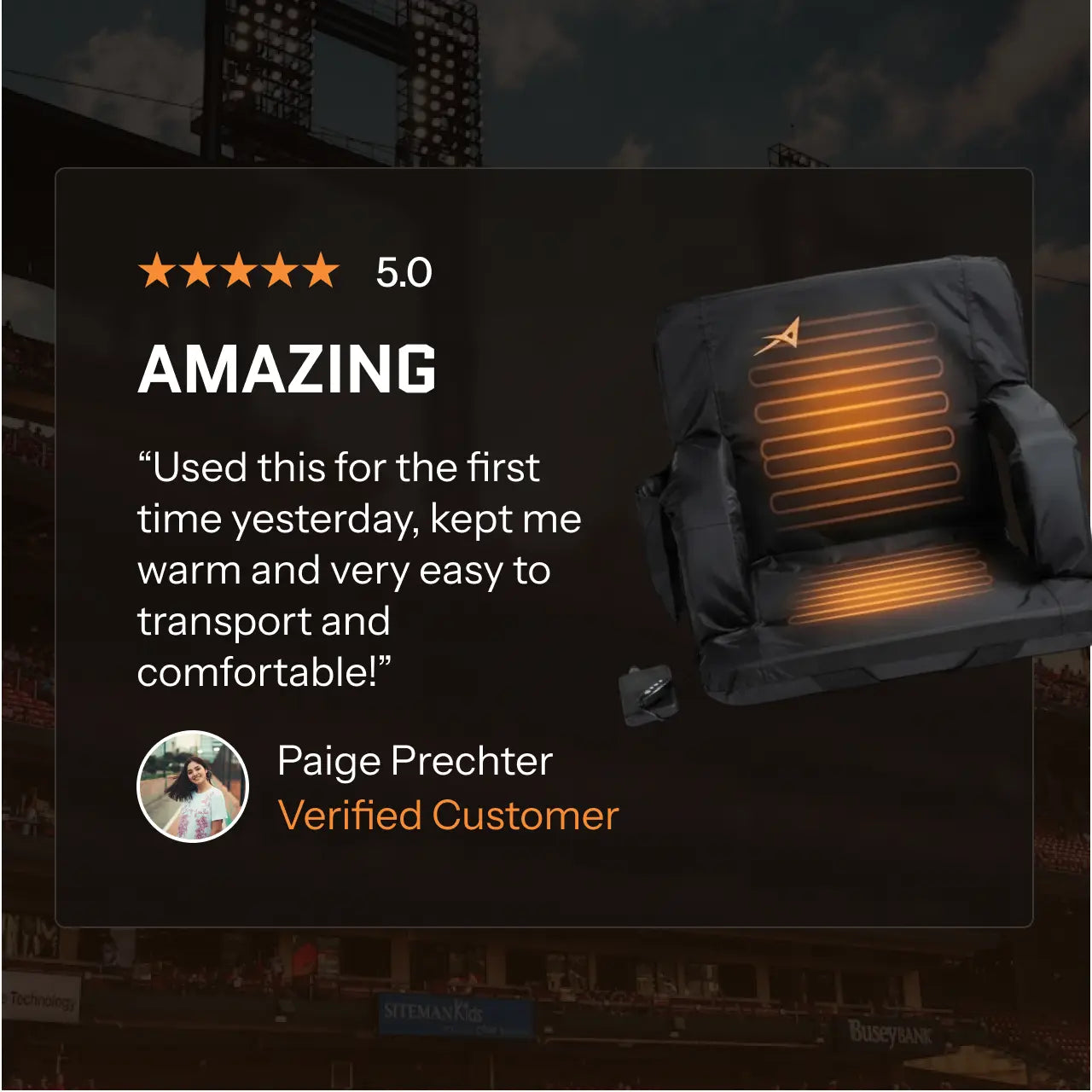 Heated Stadium Bleacher Seat with Back Support