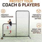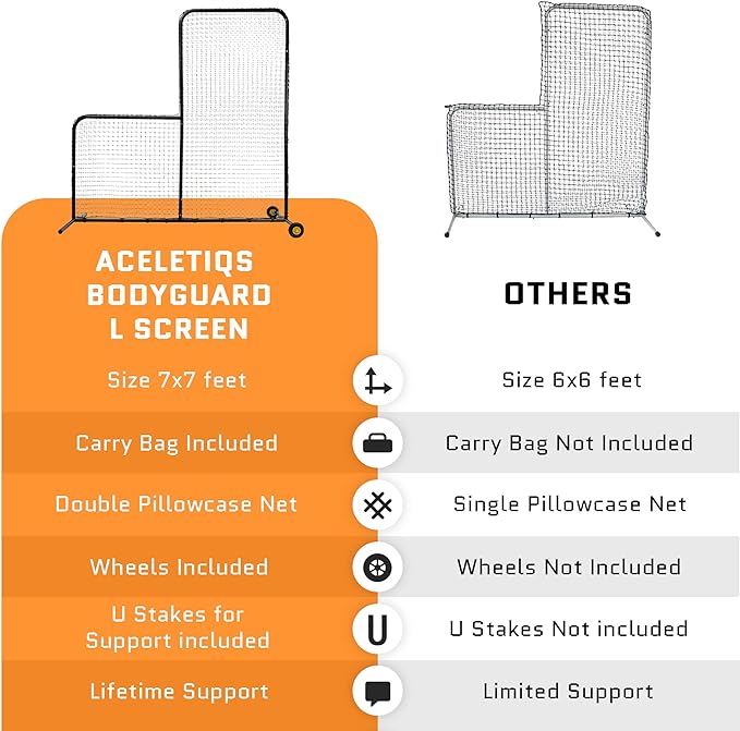 - PROTECTIVE L-SCREEN FOR SAFE PRACTICE- Whether you are looking for a Baseball/Softball L-Screen to use with your home pitching cage or a highly dependable choice for coaching Tee Ball leagues, Minor Divisions, Major Divisions up to Senior Leagues- the heavy duty portable Bodyguard pitching net, is a home-run of a choice.