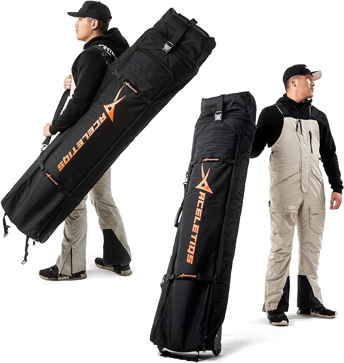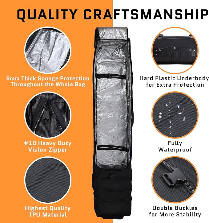 - PREMIUM QUALITY ROLLING WHEELS – Say Goodbye to dragging your Snowboard Bag thru the snow and bad weather and start your winter adventures the right way. Our quality all-terrain Urethane wheels make hauling multiple boards, boots, bindings and snowboard gear a breeze so you can travel in style.